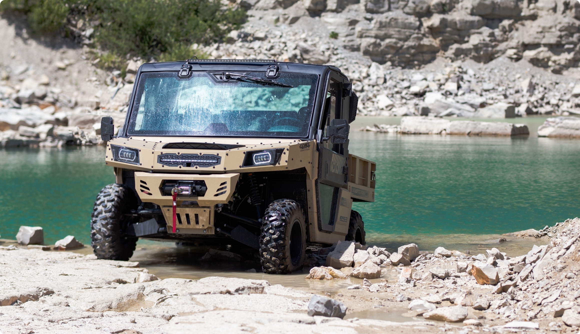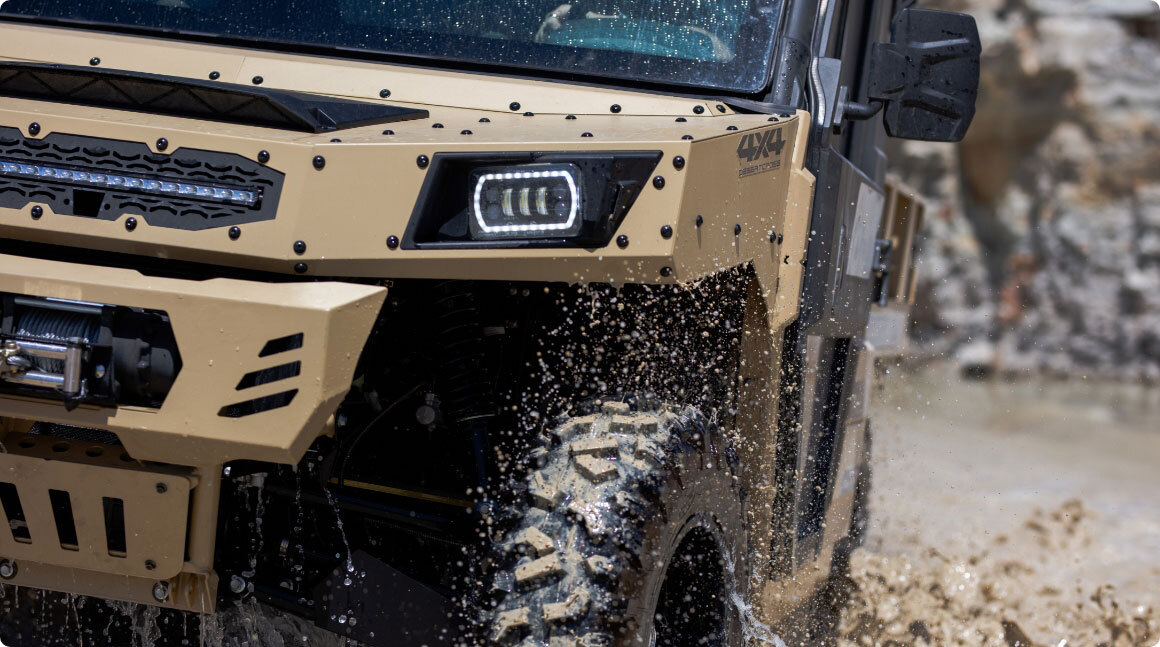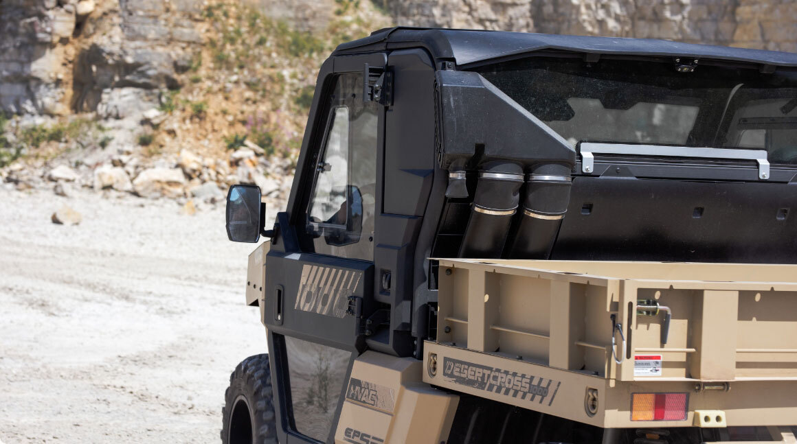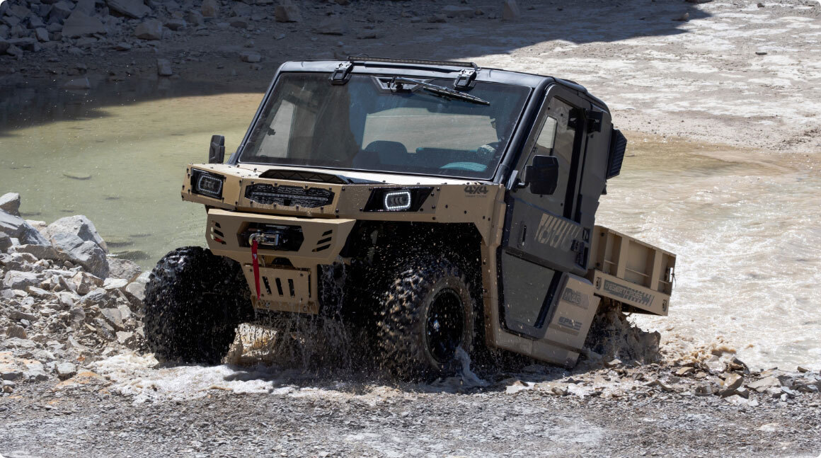 ODES DesertCross - tänavalegaalse registreeringuga (T1b, 60 km/h) ja maksimaalse offroad-jõudlusega maastikusõiduk. Selle vastupidav metallraam, massiivne konstruktsioon ja täielikult kallutatav metallist kast annavad selgelt märku: see sõiduk on loodud kasutamiseks ekstreemsetes oludes. Varustatud kliimaseadme ja soojendusega, vintsi, LED-valgusriba, esiklaasi klaasipuhasti ning kaitserauaga – DesertCrossil on kõik olemas, mida vajad äärmuslikeks maastikuoludeks.