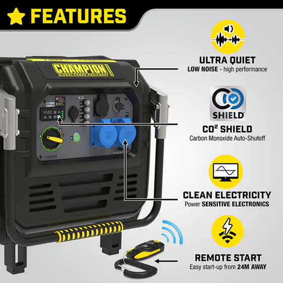 - Mugav kaugkäivitus: generaatori käivitamine või seiskamine on juhtmevaba kaugjuhtimispuldi abil imelihtne.