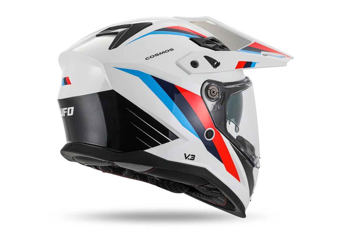 Cosmos Tourer/Crossover kiiver UFO Plastilt on varustatud kahekordse suurusega väliskestaga, mis on valmistatud väga kaitsvast ja ülivastupidavast termoplastvaigust.Varustatud läbipaistva polükarbonaadist visiiriga, mis on kriimustuskindel ning sisemise päikesevisiiriga, mis on valmistatud suitsutooniga UV-kindlast polükarbonaadist ja mida saab liuguri abil sisse tõmmata.