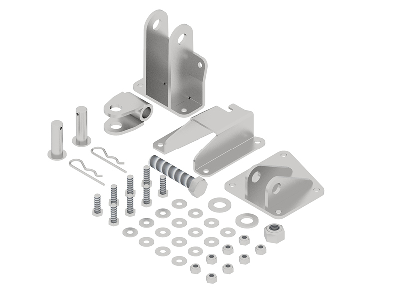 Mounting hardware kit required to use the electric-hydraulic or hydraulic cylinders for front-mount and mid-mount standard and high throw plow turning.Mounting hardware fits together with 70.1000 or 70.500 electric cylinders or 71.3100 hydraulic cylinder.