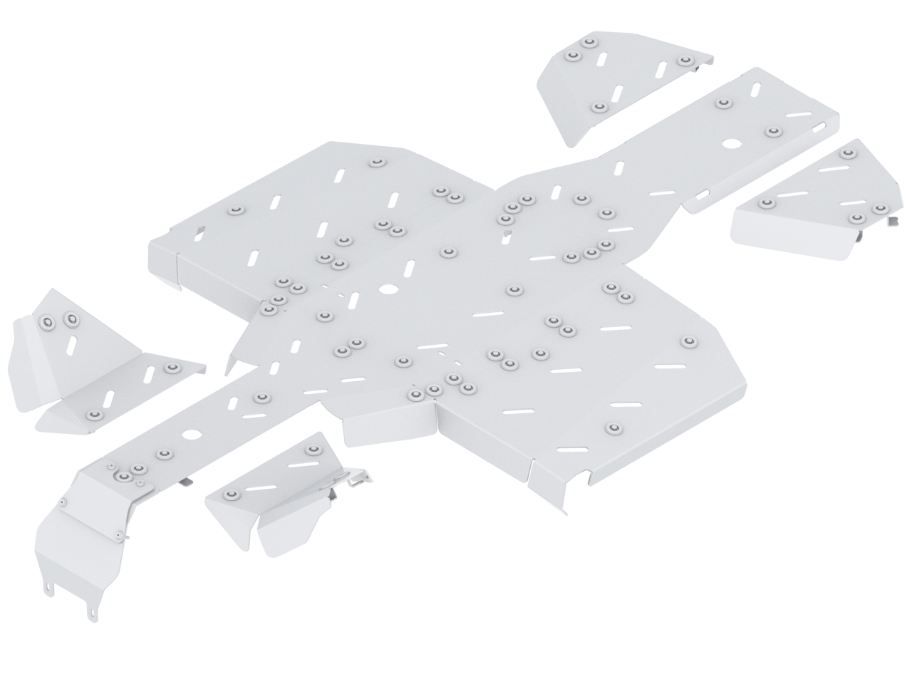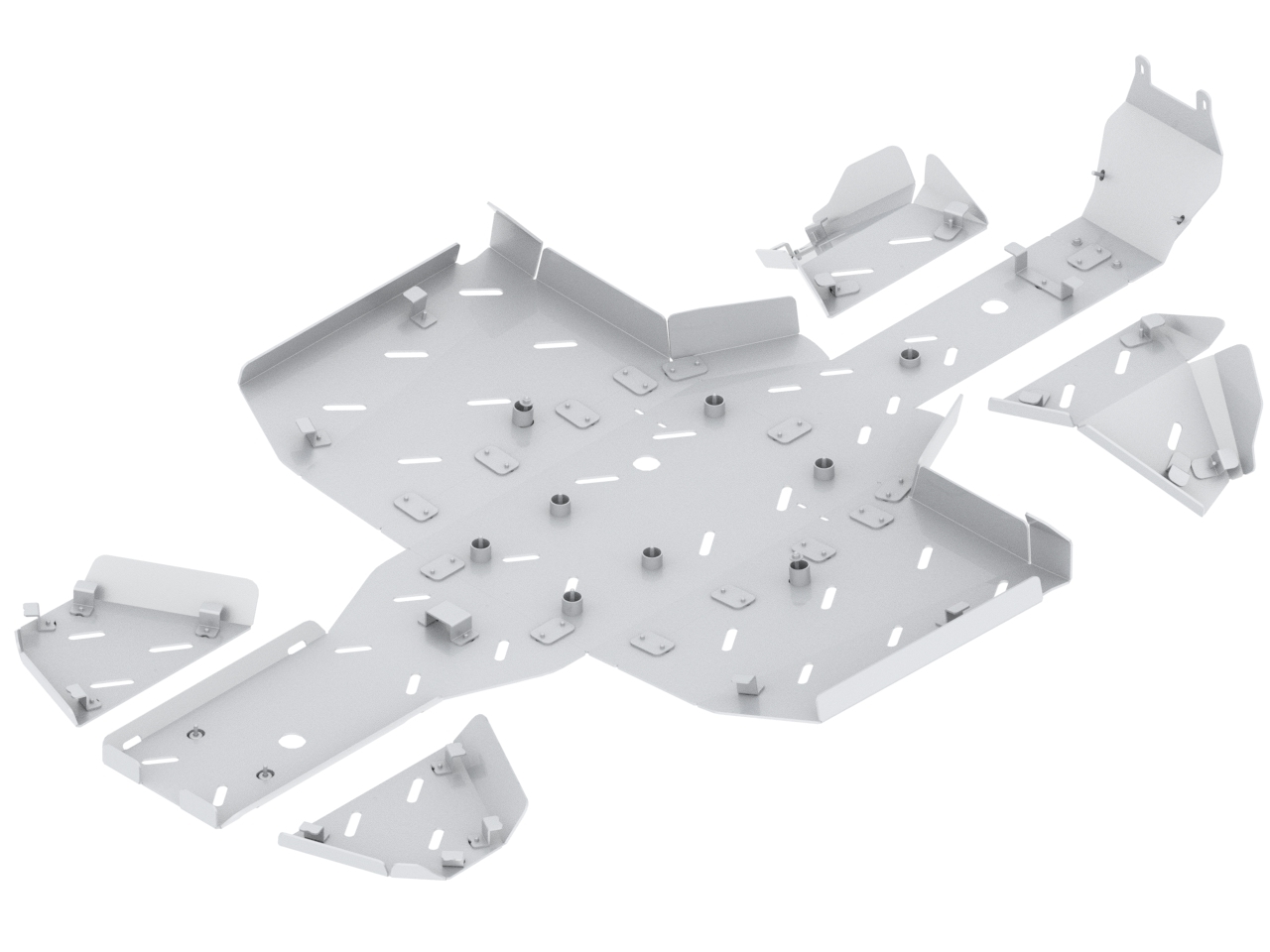 Aluminium full skid plate full kit for: AODES Pathcross 525L (2025+)*Full protection of bottom and front part of the vehicle.*Openings for mud draining.*Holes for oil changing.*Holes for IB Mid-mount adapter, compatible with IB Front-mount adapter.*Detailed installation instruction and full mounting hardware included.*Designed and constructed for best possible protection and to keep the maximum ground clearance.*Skid plate kit consist of main skid plate parts (aluminium), front A-arm guards (aluminium) and rear A-arm guards (aluminium).