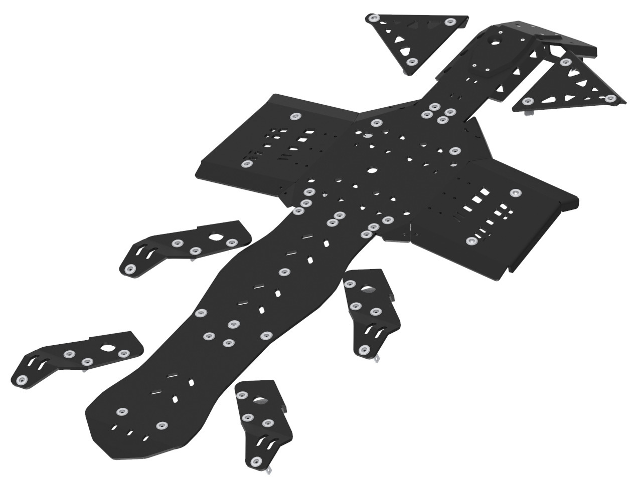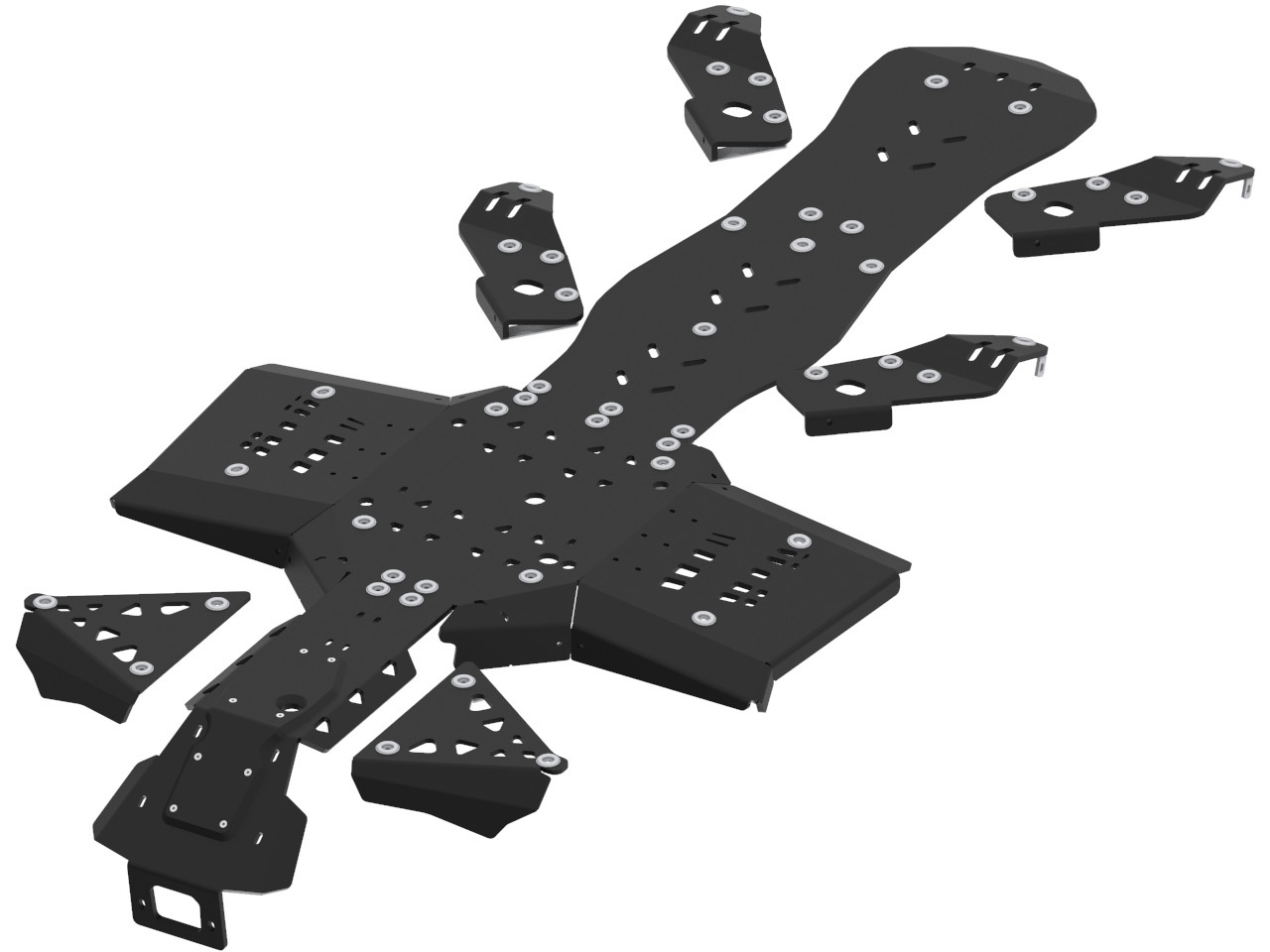- Protects the whole bottom and front part of the chassis and front, middle & rear A-arms.