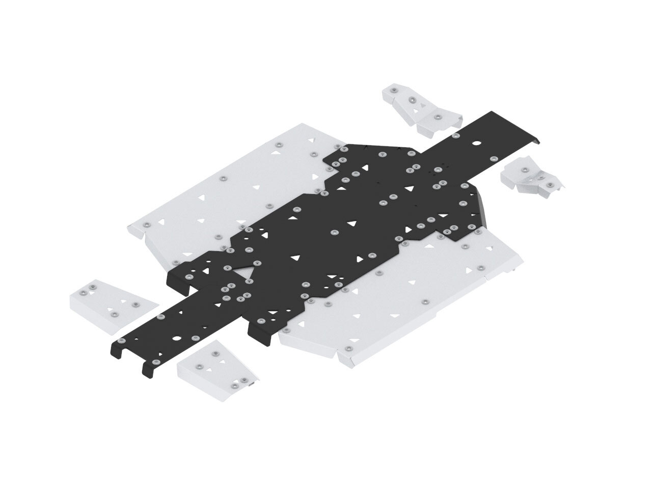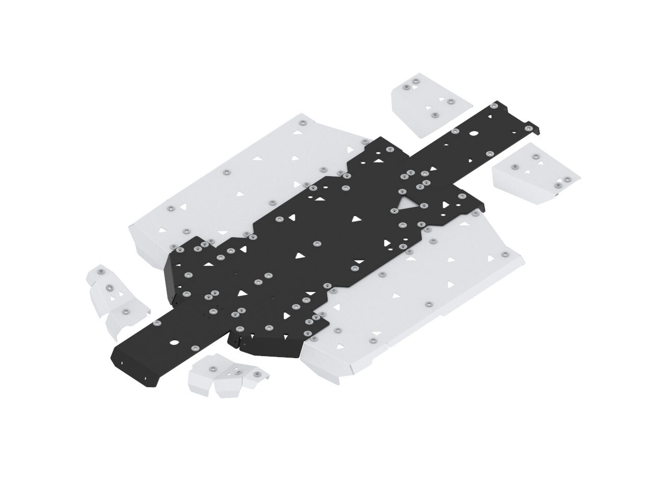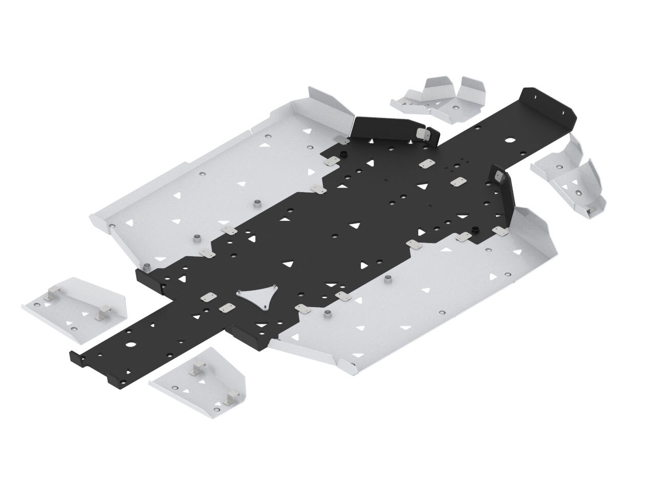 Factory fitted lower side plastics are replaced with heavy duty 4mm aluminium covers effectively protecting the wheel wells, lowers sides and the fuel tank.Center section of the skid plate is made out of slippery and strong 10mm thick HDPE plastic material, arms protections and side protections are made of heavy duty aluminium material.