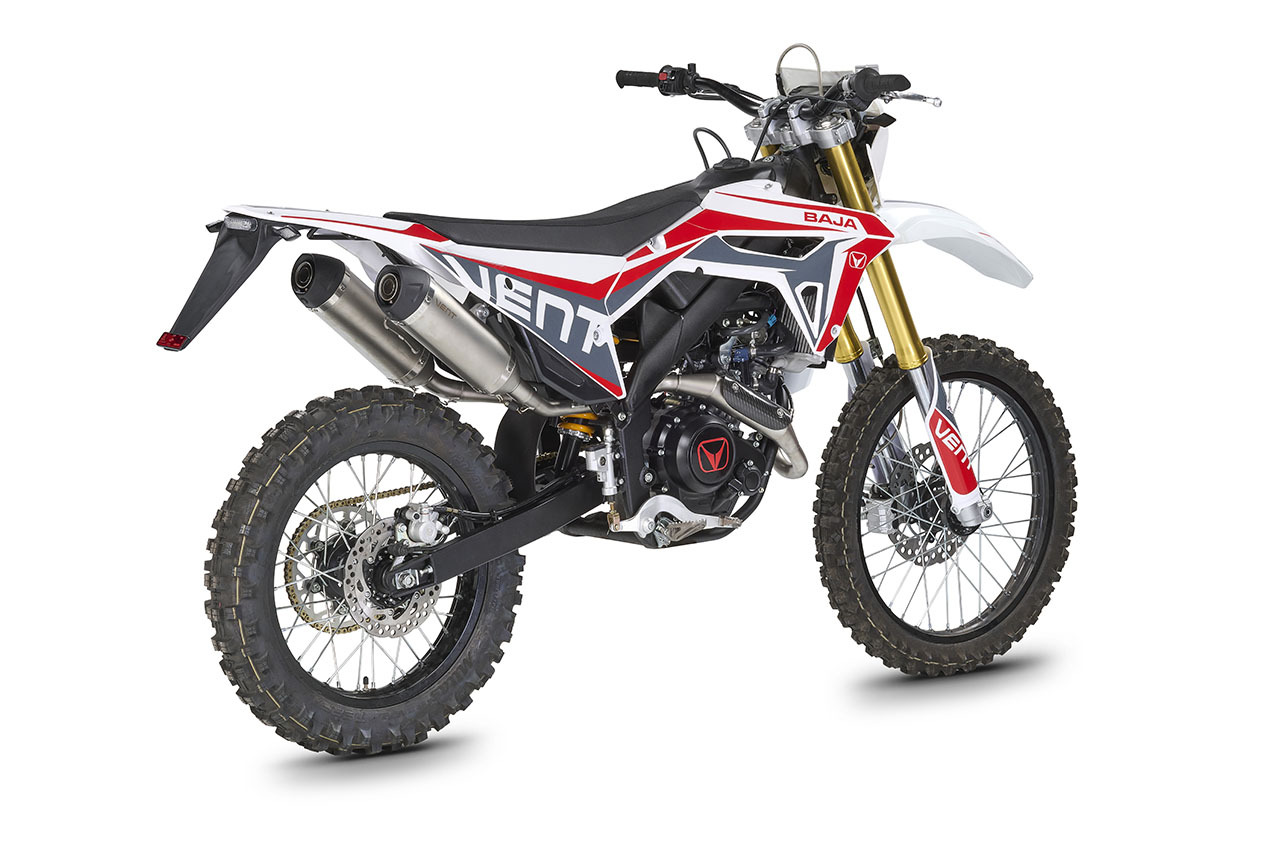 Kõik need omadused koos välimusega, mis viitab selgelt VENTi ametlikele värvidele – mida kasutatakse ka võistlusratastel –, muudavad BAJA 125 4T äärmiselt suure jõudlusega maastikumootorrattaks, olles samal ajal ideaalne kaaslane igapäevaseks kasutamiseks.