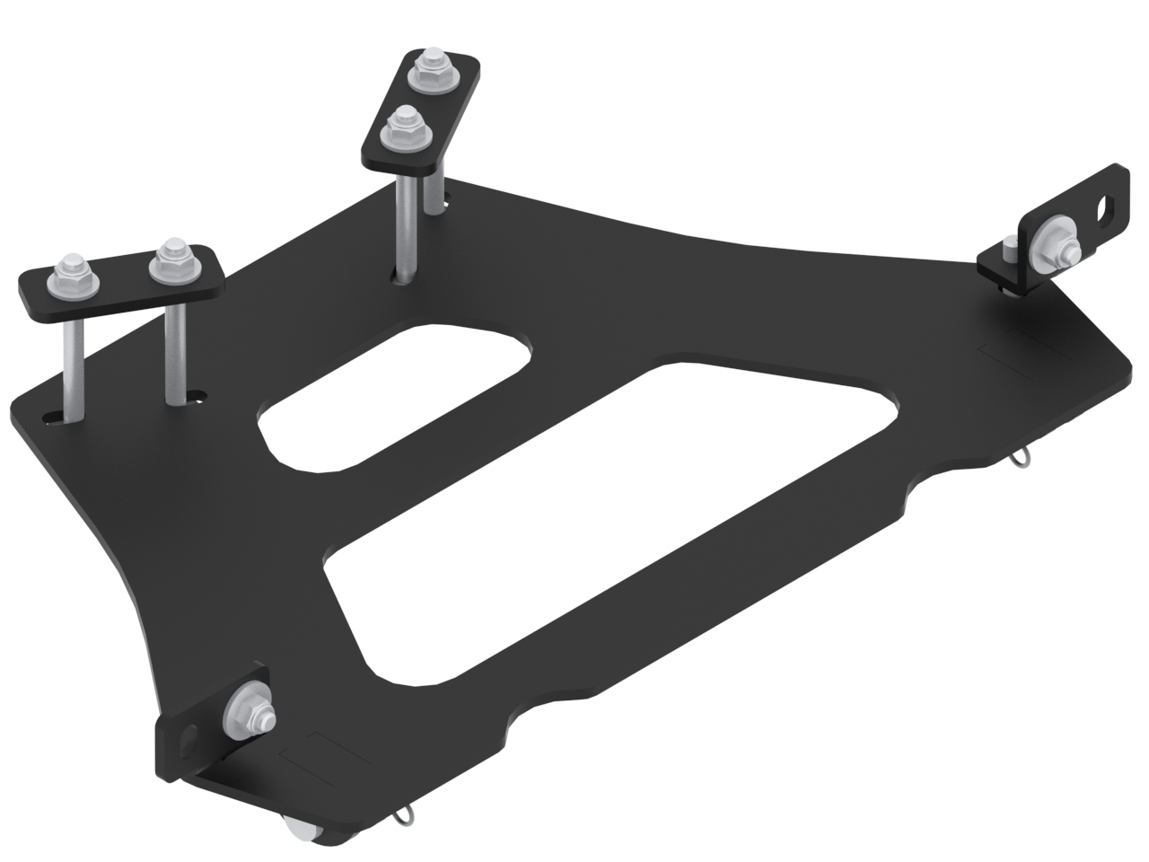 Model specific mounting kit for mid-mount plow system for the new G3 CFMOTO CFORCE 850 & 1000 (2024+)Mounting adapter to install IB V-plow kits and to connect Iron Baltic mid mount push tubes with IB plow blades, bucket and push broom and rotary broom tools.